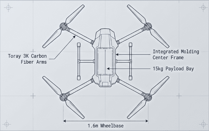 Carbon fiber enables a rare balance between low mass and high load capacity—unlocking longer missions and higher operational efficiency.