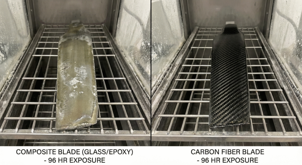 - Density: 0.64 g/cm³ (carbon fiber) vs 1.45 g/cm³ (composite)