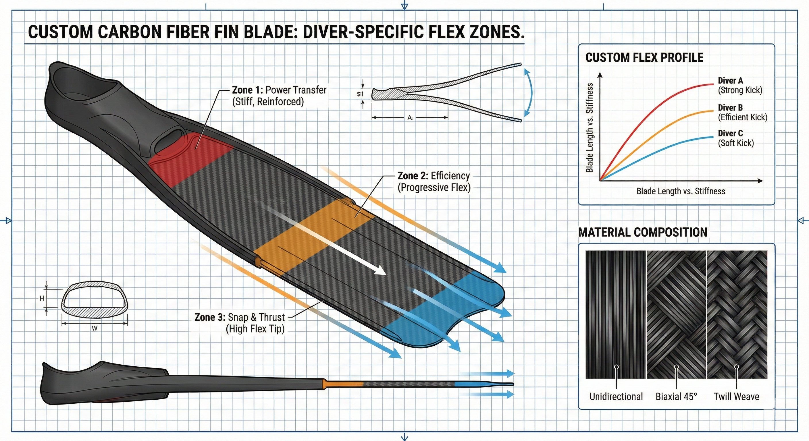Custom carbon fiber fins address this issue through modular mould systems that allow precise configuration: