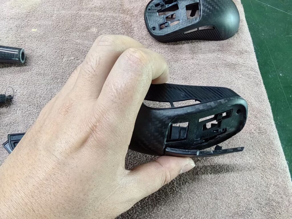 Transforming a carbon fiber concept into a production-ready mouse requires a multi-stage engineering process. The workflow follows the same principles used in automotive composite components: precise design, validated structure, robust molding, and repeatable mass production.