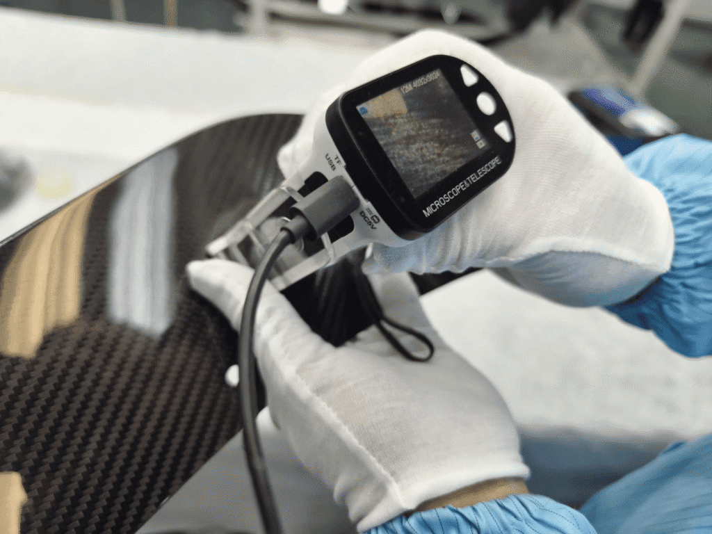 The carbon fiber overlay process — the lamination sequence that determines fiber orientation, ply count, and resin system — is where structural and cosmetic performance is either built in or compromised. Process discipline at this stage determines whether any downstream inspection step finds anything to flag.