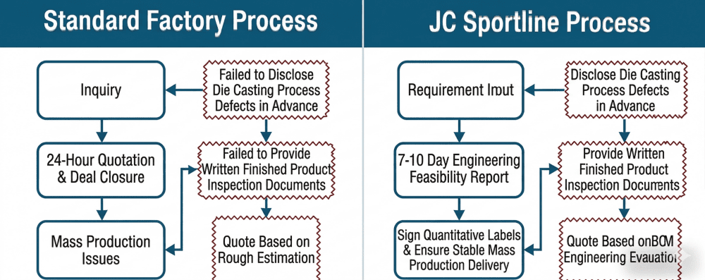 JC Sportline’s position is not subtle: we would rather recommend a client adjust their quality target or increase their tooling budget during the feasibility evaluation than quote a program we cannot deliver. That is why our on-time delivery rate is 98% across a global customer base. The programs we decline at the evaluation stage are not failures. They are the mechanism that keeps the programs we accept on track.
