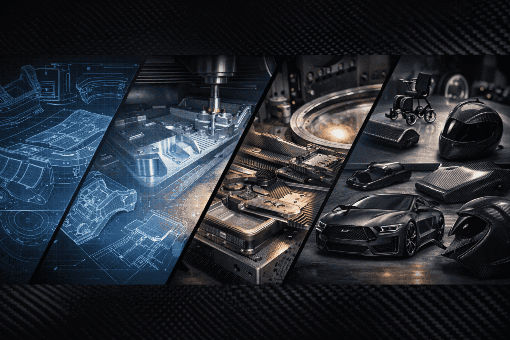 From manufacturability review to CNC patterns, mold fabrication, layup strategy, and prototype delivery — every step is optimized for speed, precision, and reliability.