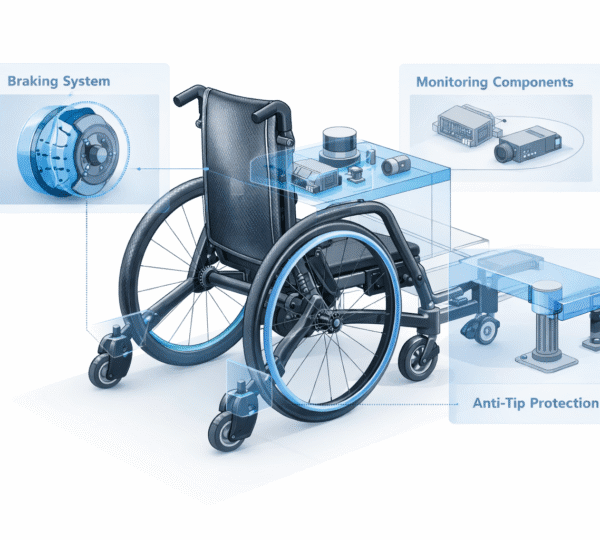 Safety functions are designed as a configurable system rather than a single feature. Depending on project requirements, braking response, anti-tip protection, and monitoring options can be integrated to address common real-world risks such as slopes, sudden stops, and stability during daily movement.