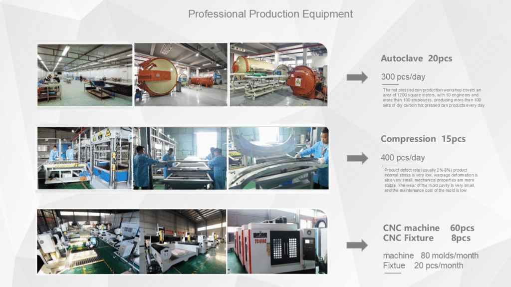 - Production – Verified data is used to shape molds through CNC machining and autoclave production.