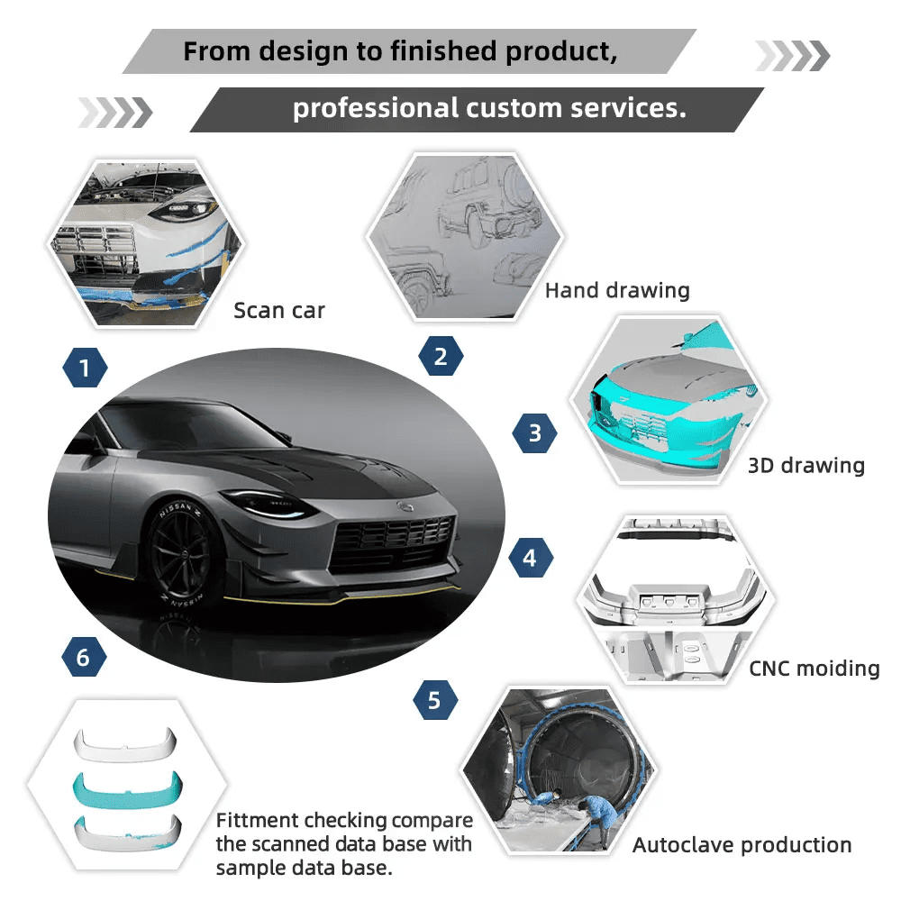 For clients who require exclusive designs or want to differentiate their products, our ODM services allow us to design custom carbon fiber body kits tailored specifically to your vision. Whether you need bespoke body kits for limited-edition cars, or unique components for motorsport vehicles, our team works with you through every step of the process—from concept to production.