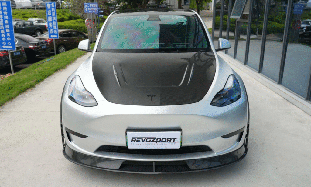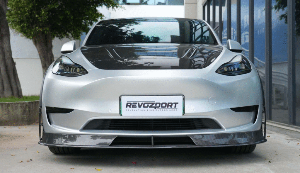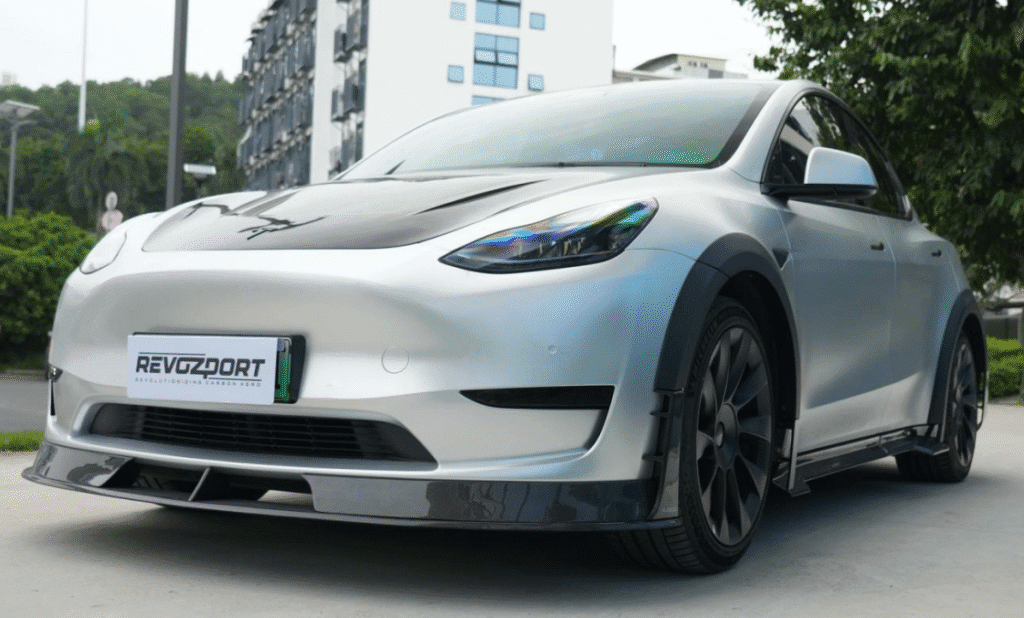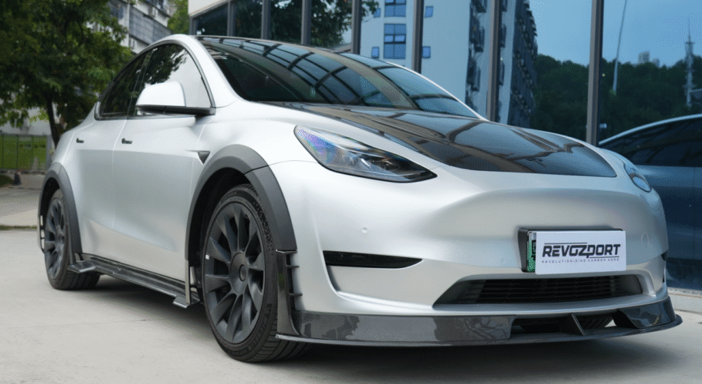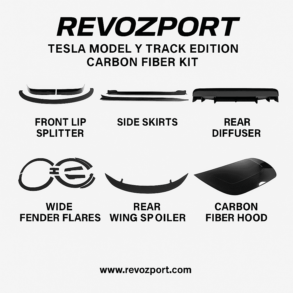 Revozport Track Edition Full Carbon Fiber Body Kit transforms the 2021–2023 Model Y into a road-legal machine inspired by pure motorsport — aggressive, lightweight, and aerodynamically optimized.