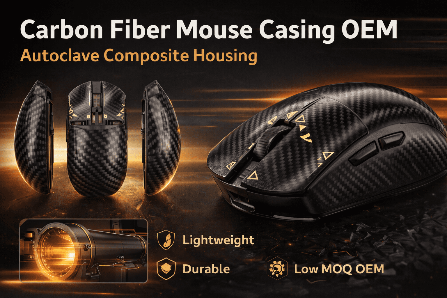 This carbon fiber mouse casing is engineered for premium consumer-electronics brands that require lightweight structure, high surface quality, and scalable production.