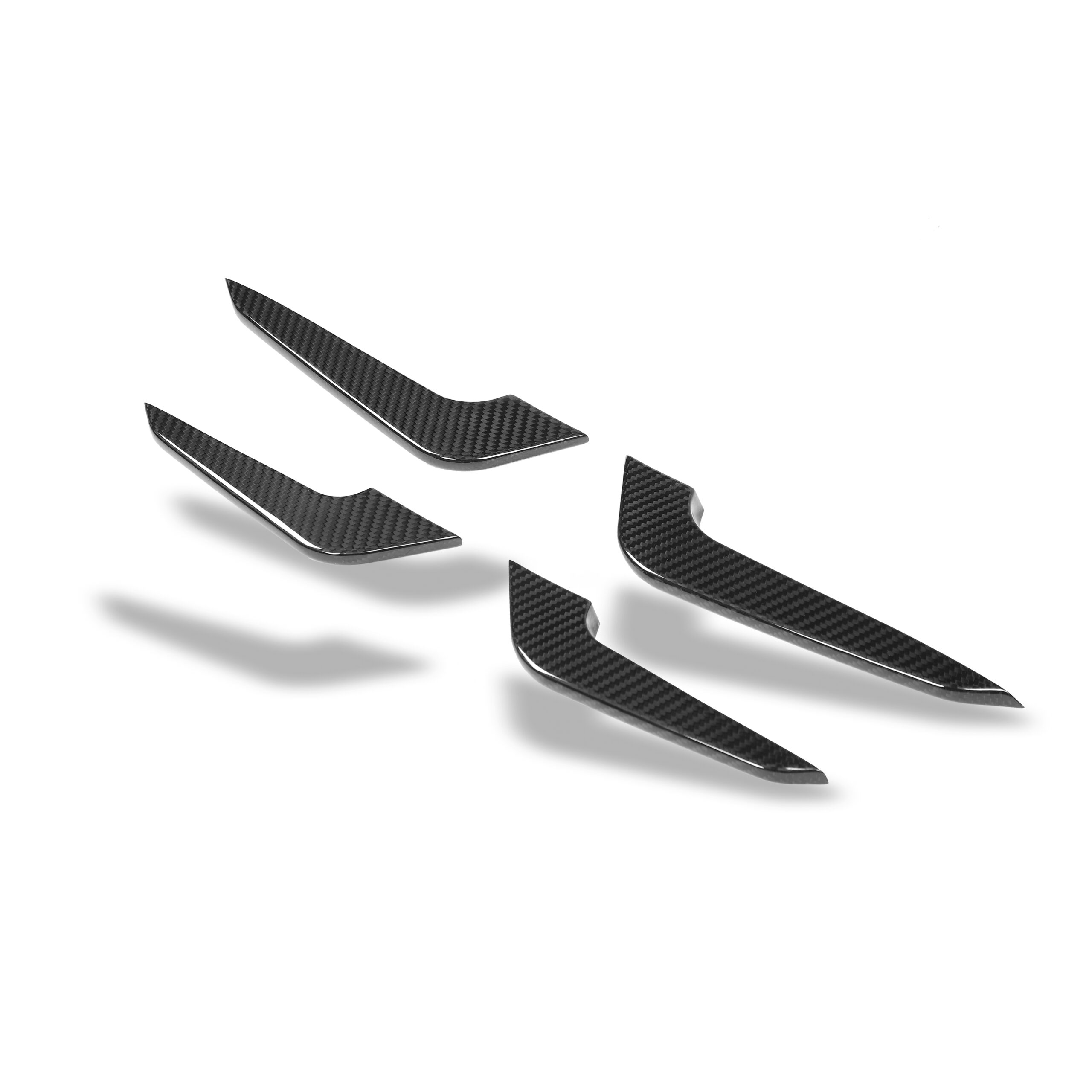 Give your Audi RS3 Sedan or Sportback an aggressive, track-inspired front-end upgrade with these full dry carbon fiber front bumper canards. Designed to accentuate the RS3’s dynamic lines, they improve aerodynamic presence while providing subtle protection to the bumper corners. Crafted from pre-preg, autoclave-cured dry carbon fiber (CFRP) and finished with a UV-resistant clear coat, these canards deliver authentic motorsport style and durability in either matte or gloss finish.