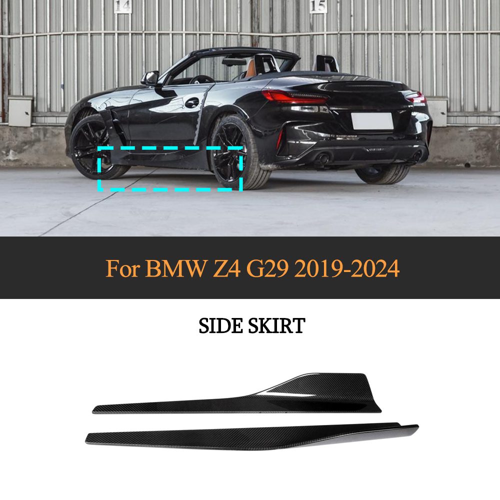 Give your 2019–2024 BMW Z4 G29 M40i Convertible a clean, OEM+ aero upgrade with these carbon fiber side skirt extensions (rocker panels). Precision-molded to the factory rocker profile, they visually lower the car and sharpen the side view while helping shield the lower doors from road rash. Made from lightweight, rigid CFRP with a UV-resistant clear coat for long-lasting gloss (or matte*), the pair installs cleanly with automotive-grade tape and supplemental hardware—no cutting to the outer rocker skin.