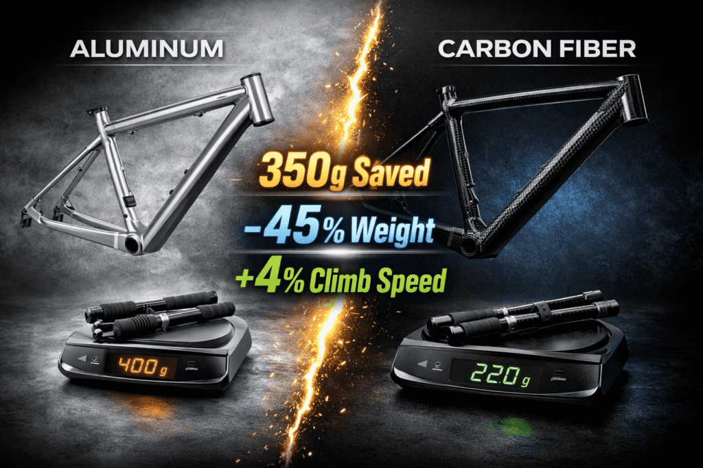 - Frame Savings: 1.1 kg carbon frame vs. 1.45 kg aluminum = 350 g saved → 4% faster climbs (peer-reviewed).