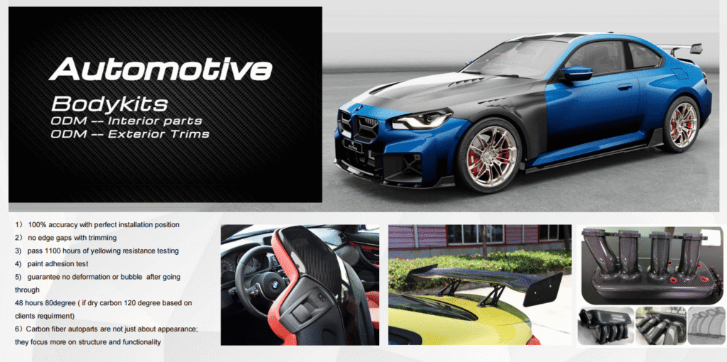 - Wet carbon is ideal for businesses looking to reduce production costs without compromising on aesthetic quality. It’s perfect for aftermarket parts, decorative pieces, and non-performance applications.