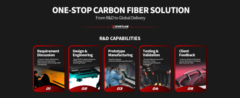Offering high-quality performance parts requires a rigorous and precise manufacturing process that ensures each product is of the highest standard. From the prototype phase to mass production, every step is crucial to delivering premium parts that meet both performance and aesthetic needs. Let’s walk through the advanced manufacturing techniques we use to ensure top-tier quality and performance for your business.