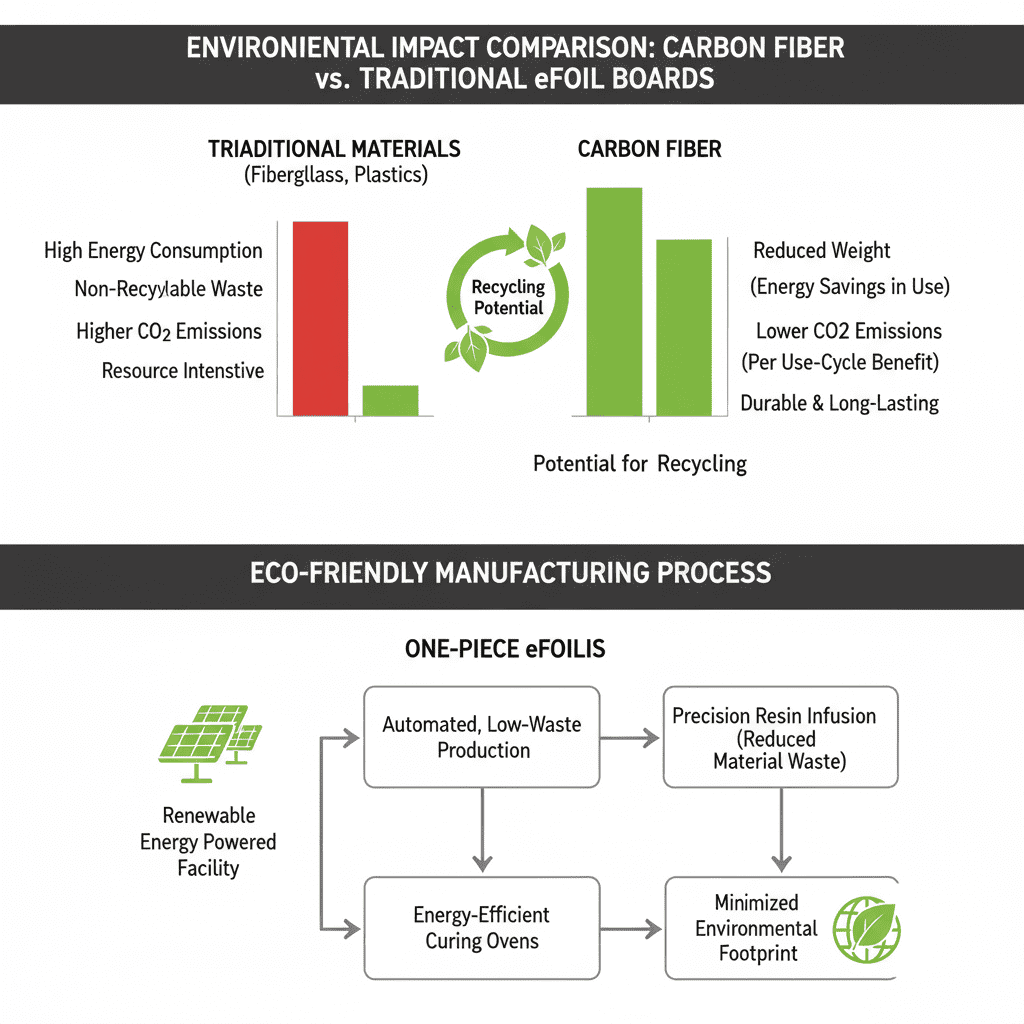 The one-piece design further contributes to sustainability by reducing the number of materials required. With fewer components needed to construct the board, material waste is minimized. Additionally, carbon fiber materials used in eFoils can be recycled, which is not always the case with traditional materials. This ensures that the environmental impact of production is lower and that the boards are more eco-friendly at the end of their life cycle.